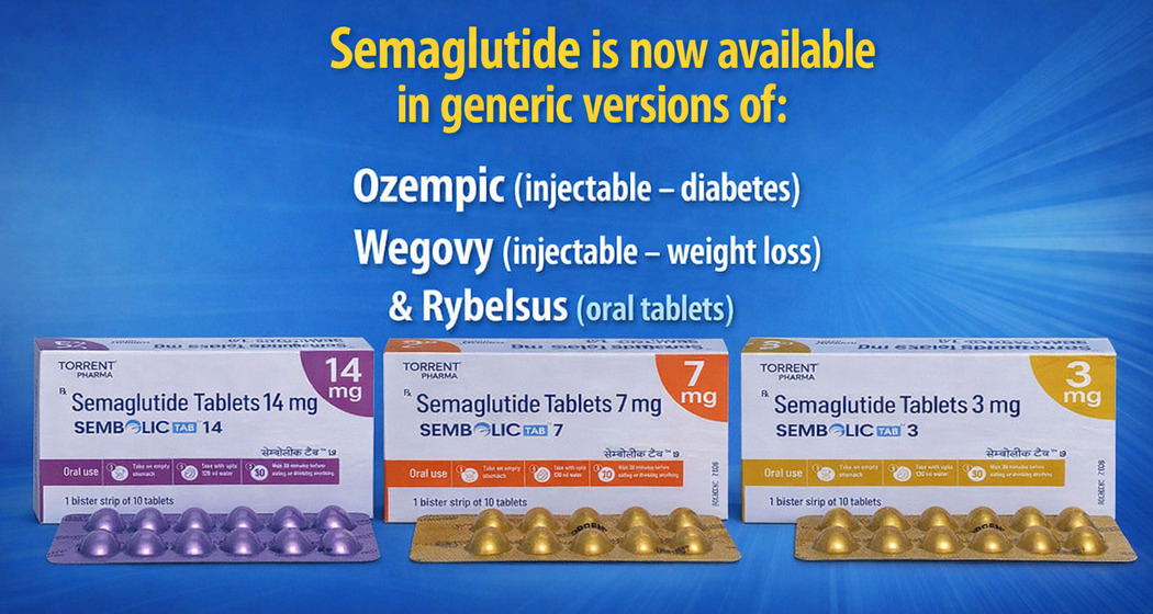 March 20, 2026 - TRIGGER EVENT Semaglutide patent officially expired in India. This unlocks generic versions of: Ozempic (injectable – diabetes) Wegovy (injectable – weight loss) Rybelsus (oral tablets) This is the start of the generic era. Get real-time SMS & Email tracking for all shipments to the USA through USPS.